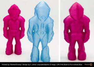 - excellent layer to layer adhesion and adhesion to other materials with multi material printing