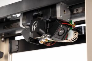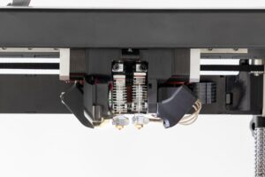 Printeren er med direkte extruder, der fødes filamentet direkte ned i hotenden, dette sikrer at der kan printes med flexible filamenter uden problemer.